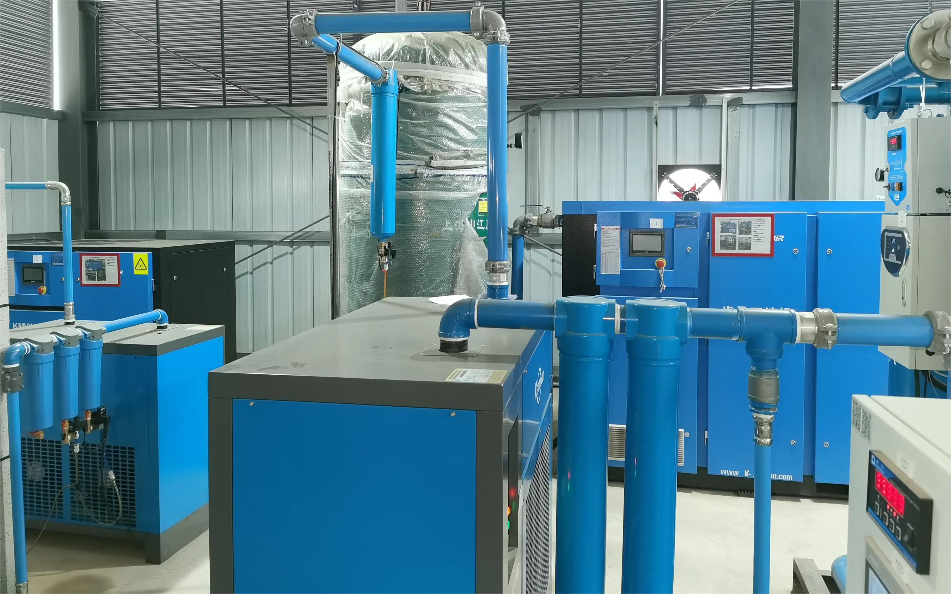 產品出廠時,機器中已充滿壓縮機油,若安裝就位后,接通電源,即可投入運行,通過帶背光的液晶屏幕,清晰的現(xiàn)實機器的運行狀態(tài)。